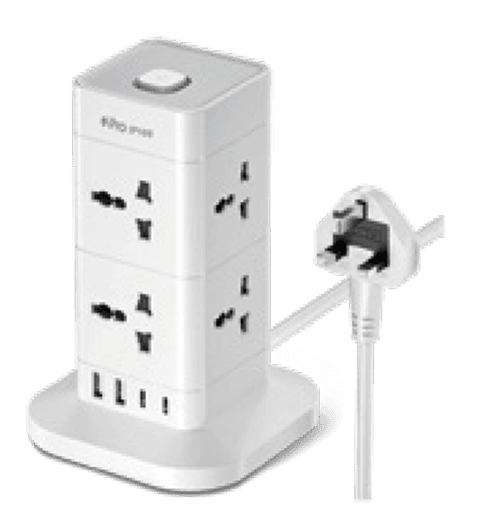 12 In Universal Tower, 2 USB -C Ports, 2 USB -A Ports, Overload Protector, 2M